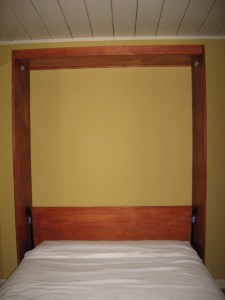 But, it wasn’t as cheap as other bed options (futons, cheap metal frame or even other factory made Murphy beds) and it was a lot of work. I didn’t keep track but it was easily 40 hours between Heather and I. A better equipped shop might have done it faster.
