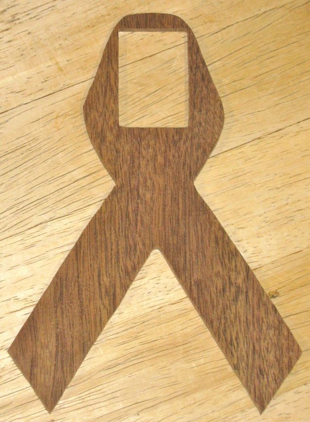 And finally here is a little project related to Prostate Cancer. A few weeks ago a friend in prostate cancer forum sent me two US postage prostate awareness stamps. I decided to make frames for them. I got this design from a friend on a scroll saw forum (attribute TBA when I get permission to use his name). I cut the piece out of walnut because the prostate is about the size and shape of a walnut. Here is the rough cut out: