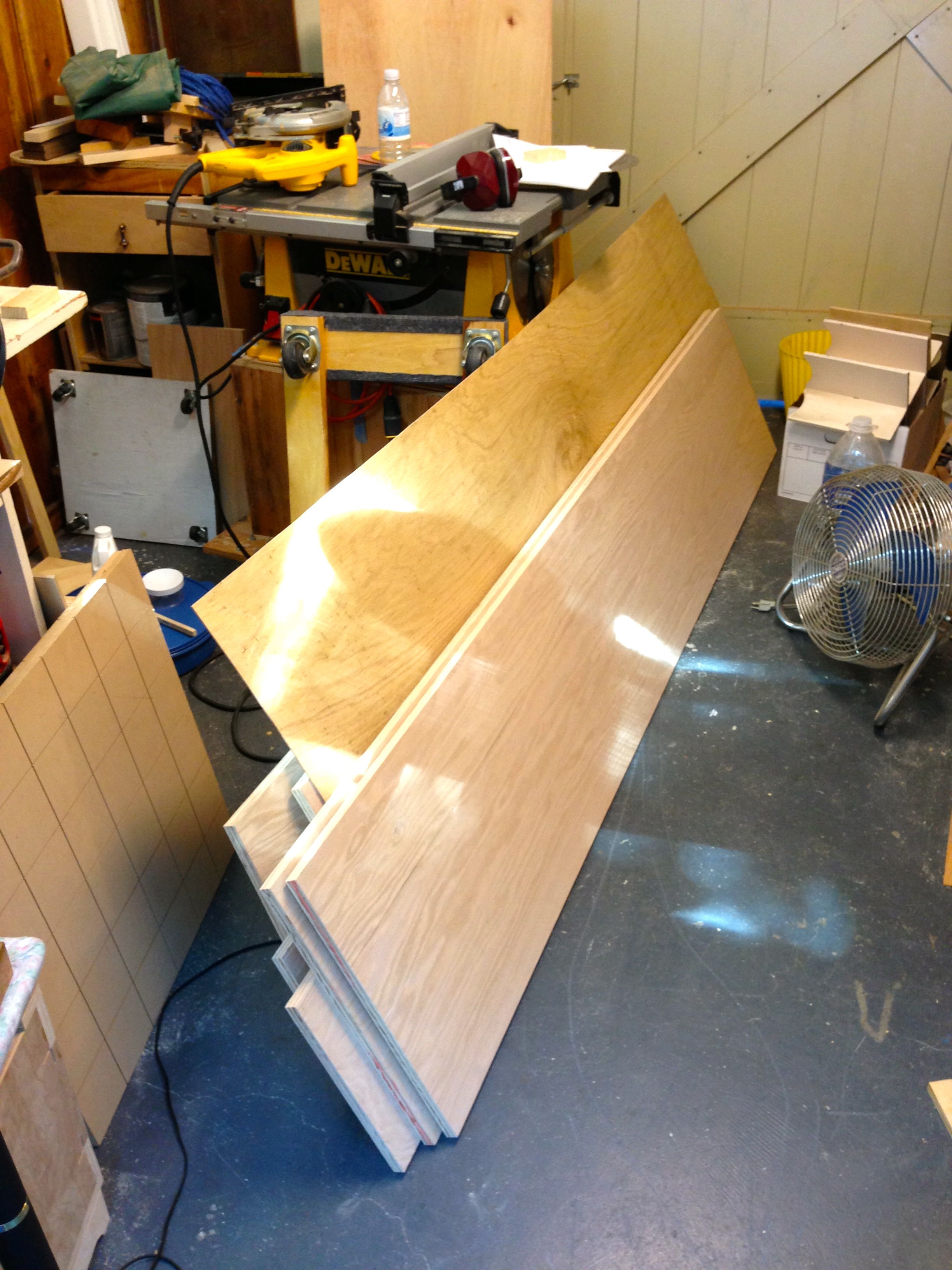 Some day this stack of red oak plywood will be our new entertainment center. I am hoping that when I actually finish this that Heather will let me buy that new band saw I want.