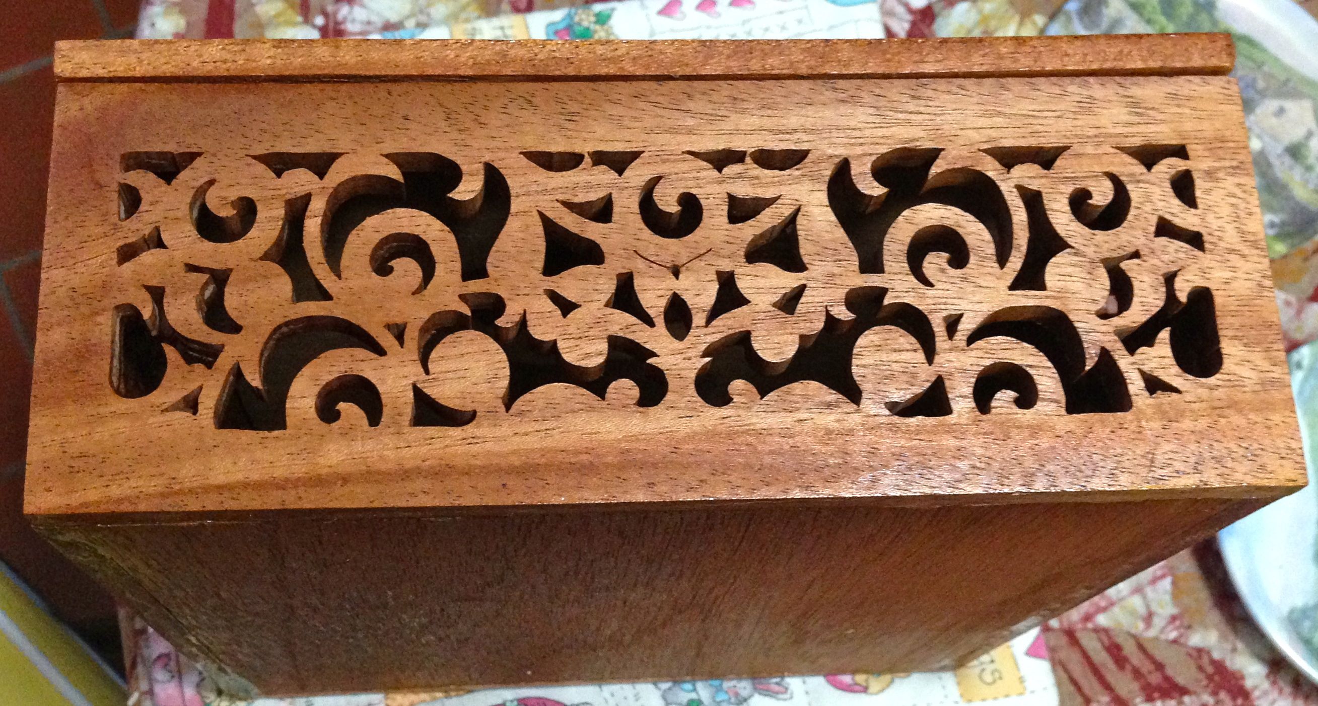 This week I put the final touches on this fretwork box with marquetry on the bottom and inside top lid.