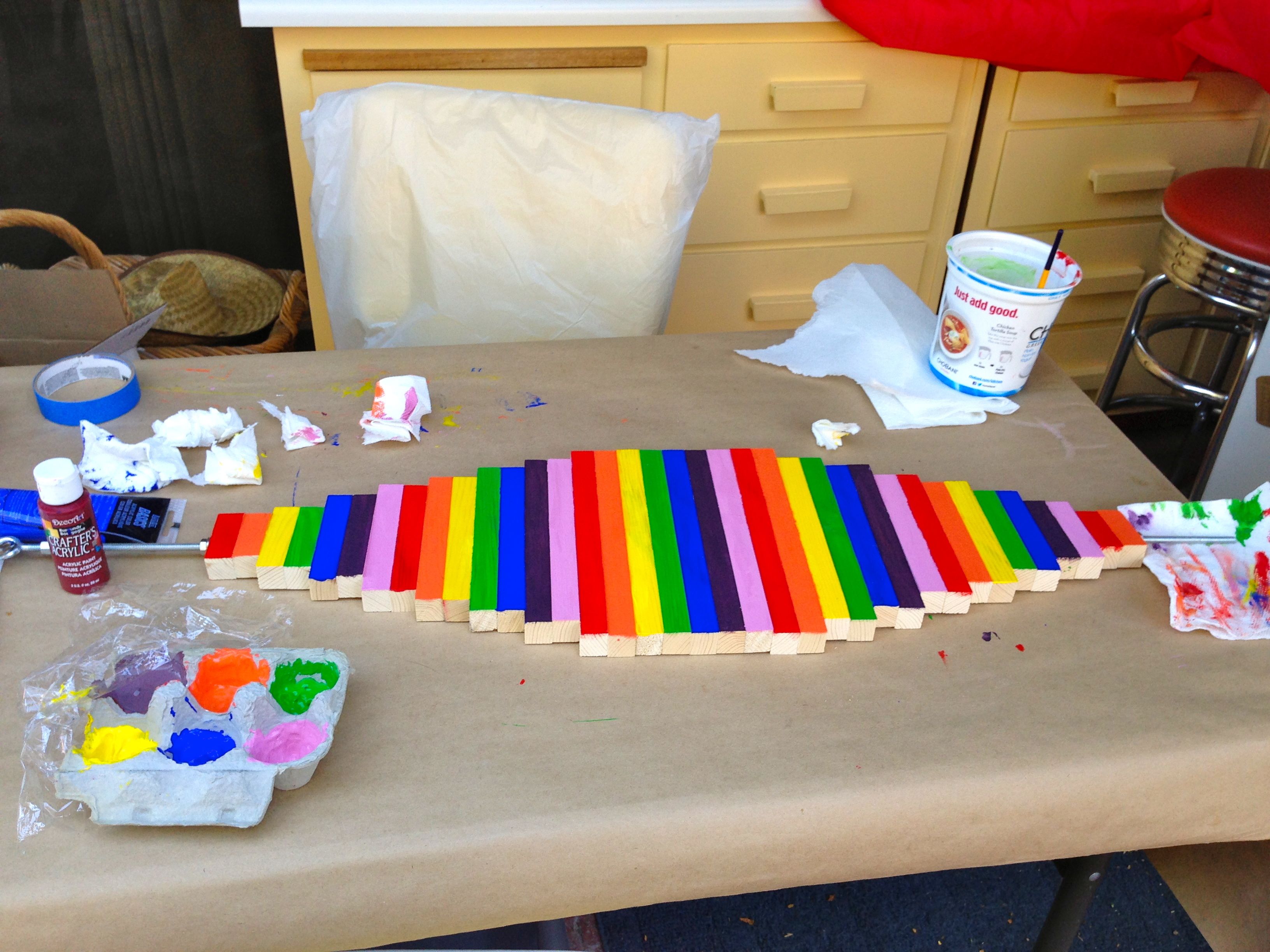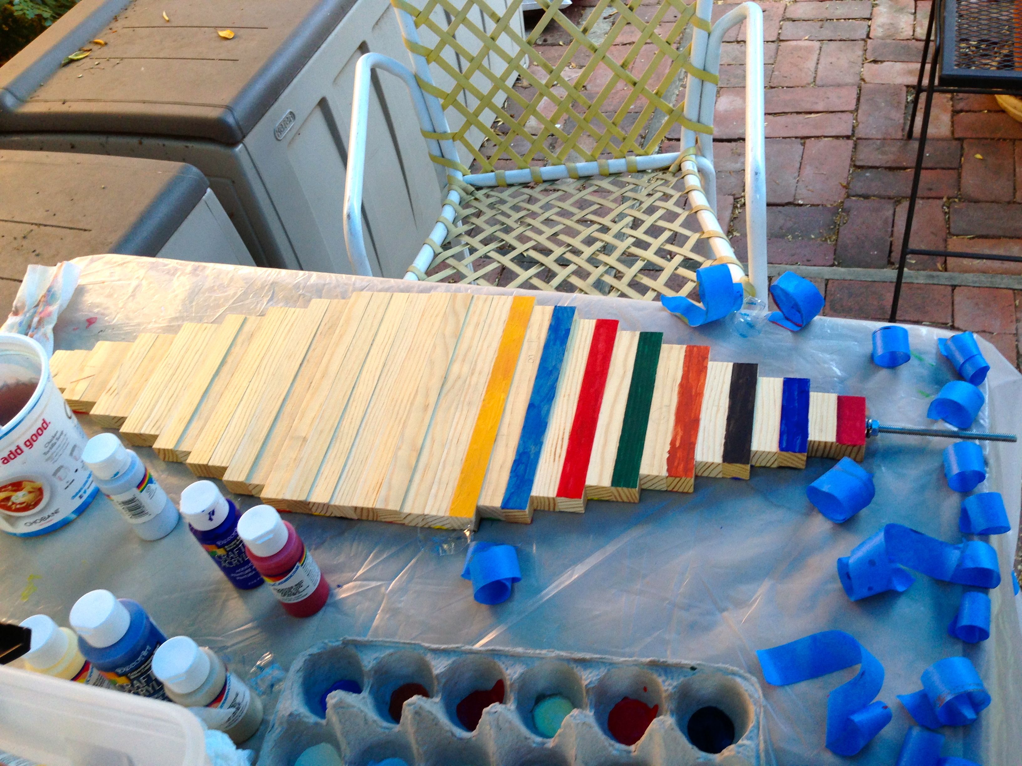 This week we’ve got the grand kids here so we’ve been doing so kid’s woodworking in the shop.  First project nearing completion is this wooden wind spinner we saw on Wood Working for Mere Mortals.  We’re making two.  Here’s the progress as of today: