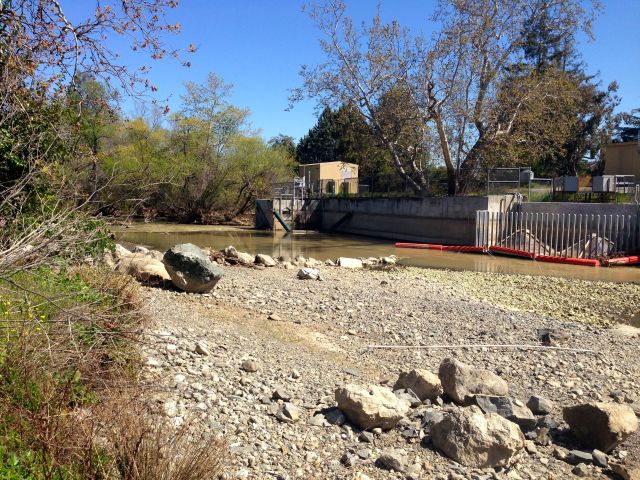 On the far bank is the diversion control structure for the percolation ponds. The diversion dam is down at the moment.