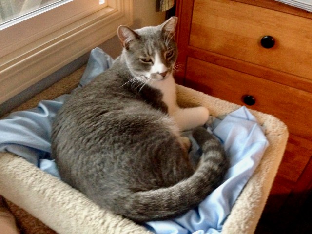 His majesty, Mr. Socks claiming the prized spot by the window.