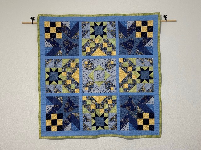Sadly, I was also in my senior year of my English degree at San Jose State and time wasn’t something I had a lot of. Heather ended up taking my blocks and finished a wall hanging which is now in our guest room.