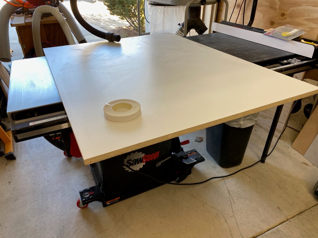 This will be the top for Heather’s new quilting cutting table. She’s getting a new cutting table so I can get her old one. I currently don’t have a cutting table in my sewing area and sharing one is difficult when we each have projects going. I was going to make a new one for me, but her’s has always been too tall for her, while her’s is the right height for me, so we’ll move her’s into my room and I’m making her a new one at height for her.