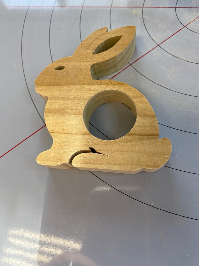 This is either an Easter Egg holder or a napkin ring. Your choice. I’m making about a dozen. The wood is poplar from an old cabinet drawer I salvaged. These are fast to cut, these one took less than an hour.
