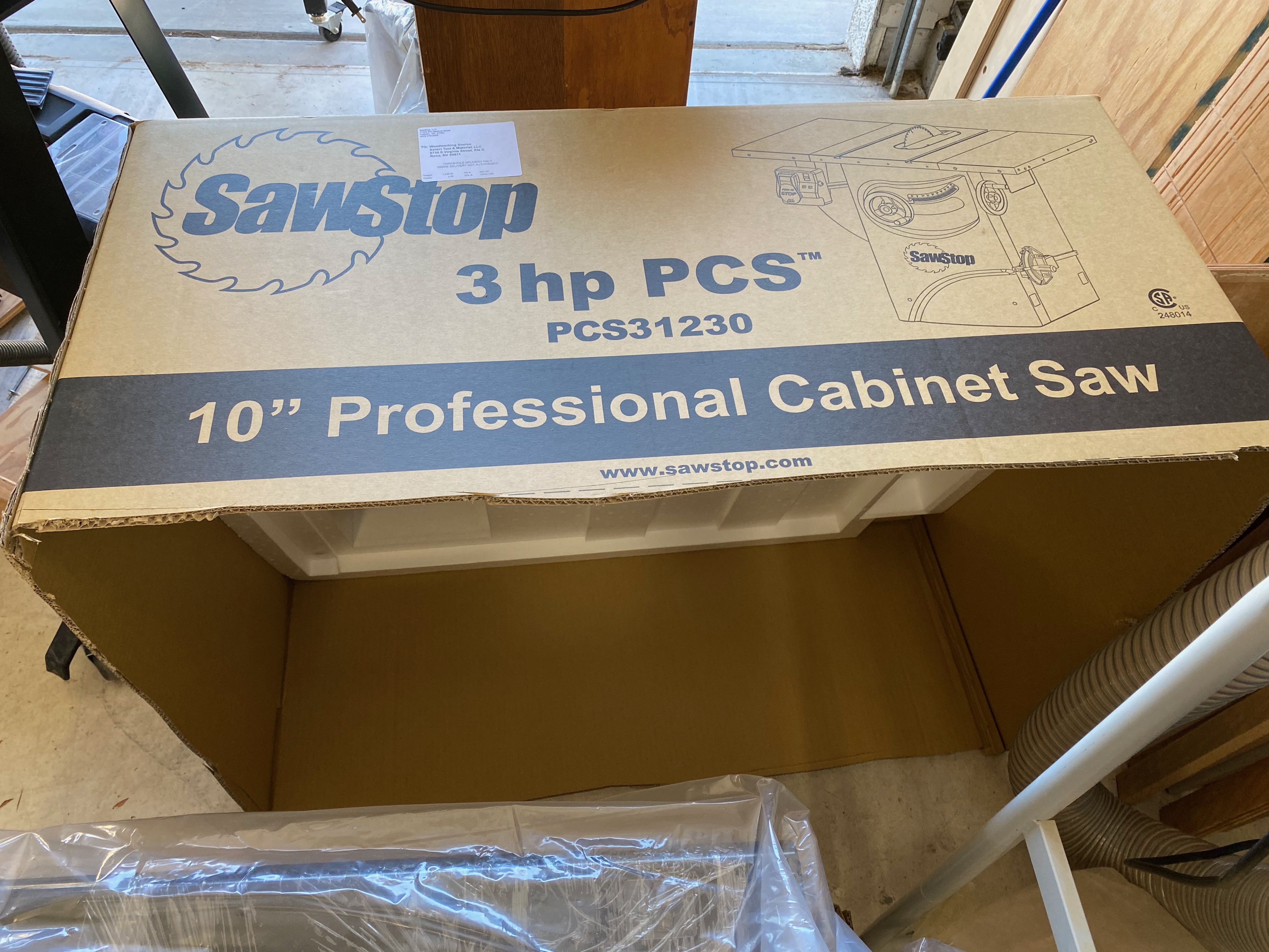 It took 10 minutes to get the box open. Looks like I’ll need to get one of my strong grandsons over to get the saw vertical.