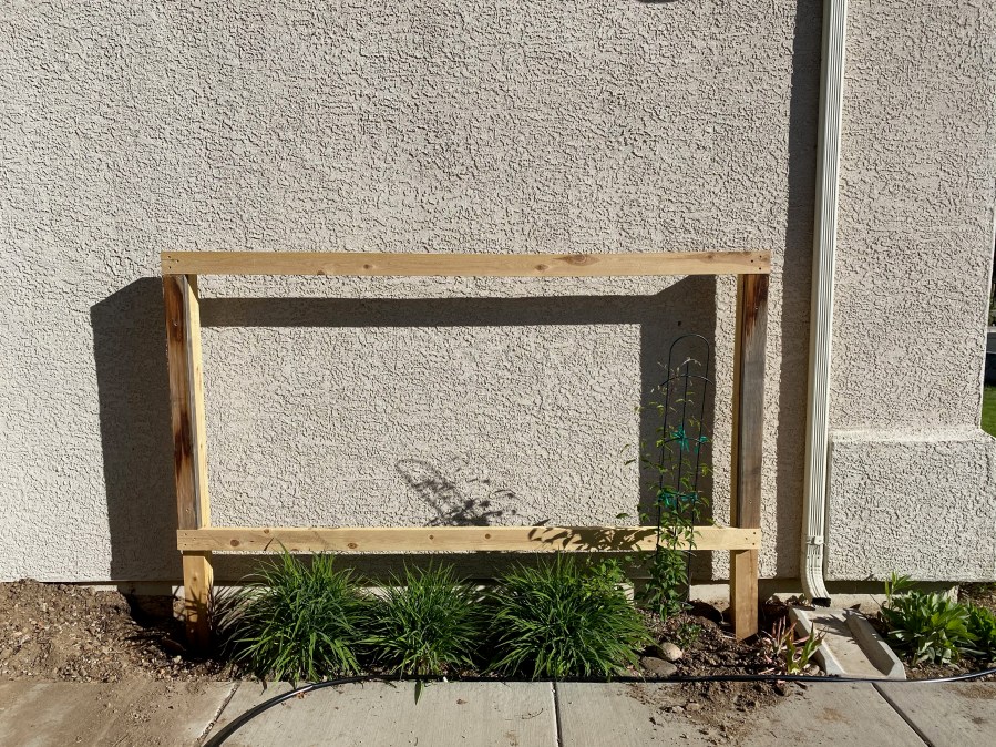 The trellis frame. 7 feet wide and about 5 feet high.