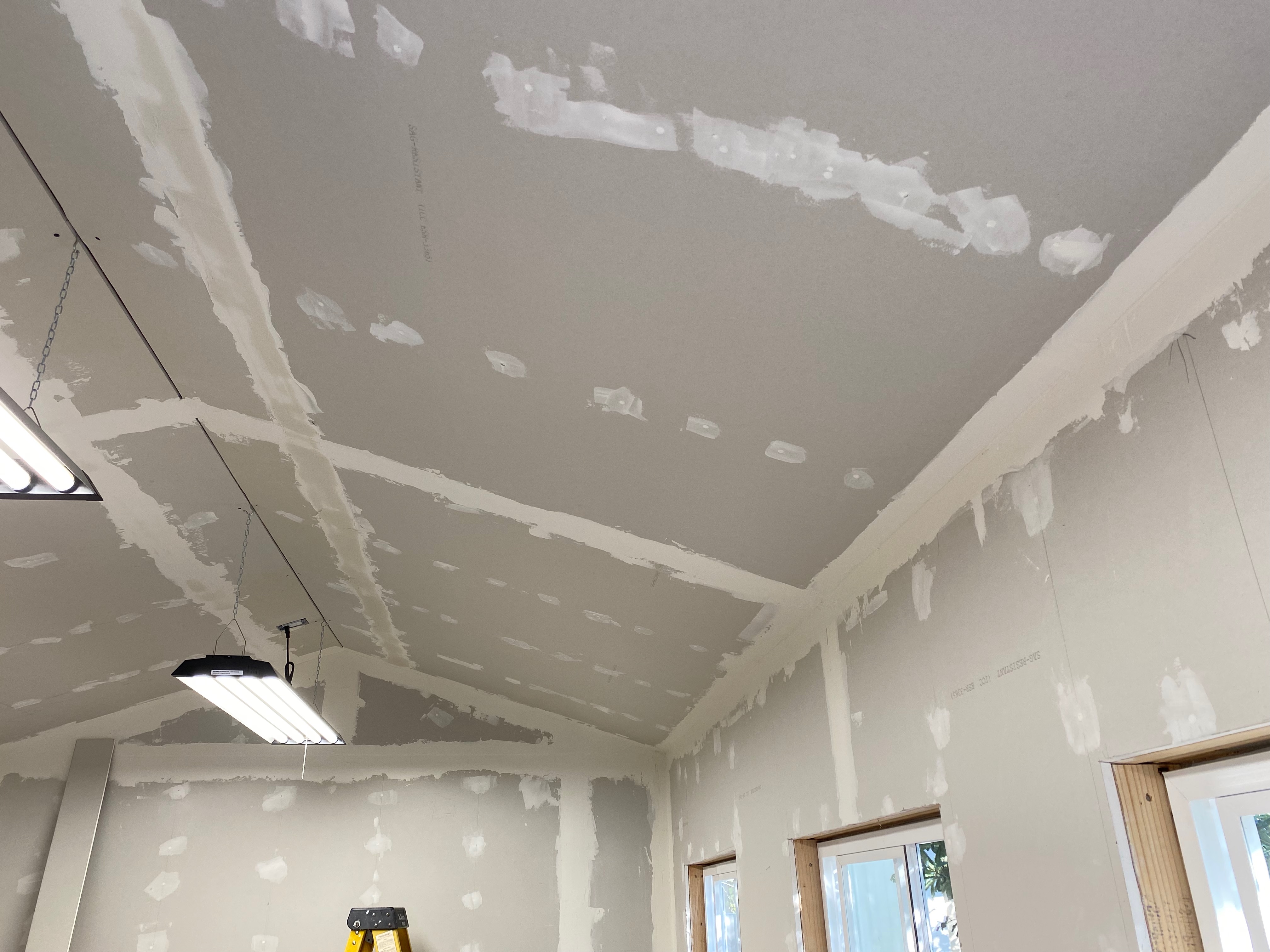 Lots of mud. Just one big seam left todo and then it’s on to the texturing, painting, flooring, moving the tools in … Yup should be done with in a year or so.