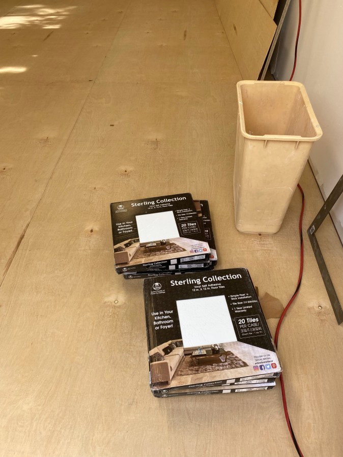 The vinyl titles for the flooring. Let me tell you, those things are heavy.